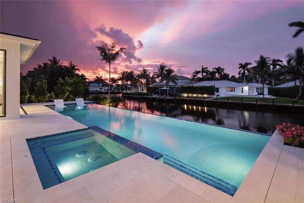 Showcasing light and breezy seaside-inspired aesthetics complemented by warm natural wood tones, this newly constructed masterpiece by Wilbrett Construction Company is a testament to exceptional craftsmanship. Designed with sophistication by Kukk Architecture and finished with the exquisite touches of Freestyle Interiors, this home spans approximately 6585 square feet of meticulously planned living space, adorned with luxury features at every turn. Step into a grand great room where intricate ...Showcasing light and breezy seaside-inspired aesthetics complemented by warm natural wood tones, this newly constructed masterpiece by Wilbrett Construction Company is a testament to exceptional craftsmanship. Designed with sophistication by Kukk Architecture and finished with the exquisite touches of Freestyle Interiors, this home spans approximately 6585 square feet of meticulously planned living space, adorned with luxury features at every turn. Step into a grand great room where intricate ceiling details add a touch of artistry and seamlessly flow into the chefs kitchen complete with custom cabinetry and a well-appointed butlers pantry. Adjacent to this central space, a wet bar and temperature controlled wine cellar perfectly complement a spacious study, offering a refined retreat with custom cabinetry that harmonizes functionality and elegance. The main-floor primary suite offers tranquil water views and a spa-inspired bath featuring a freestanding soaking tub and a walk-in shower. Upstairs, four generously sized ensuite bedrooms encircle a central living area, which includes a wet bar and access to an extended balcony that captures spectacular wide water vistas. Outdoor living is a dream come true with a resort-style infinity-edge pool, soothing spa, and sun shelf, surrounded by a covered loggia outfitted with remote controlled screens and shutters. A stone-clad fireplace creates a cozy ambiance, while the outdoor kitchen makes hosting gatherings effortless and enjoyable. Ideally situated on the waters of Egret Channel, with its prime location at the intersection of Heron Cove and Gull Cove, the property takes full advantage of sweeping water views. Boating enthusiasts will appreciate the deep-and wide water frontage, ideal for navigable access. This serene setting is also just moments from Naples pristine white sandy beaches and the shops and restaurants of Third Street south. This thoughtfully designed residence embodies the quintessential Florida lifestyle, offering a rare blend of elegance, comfort, and functionality.